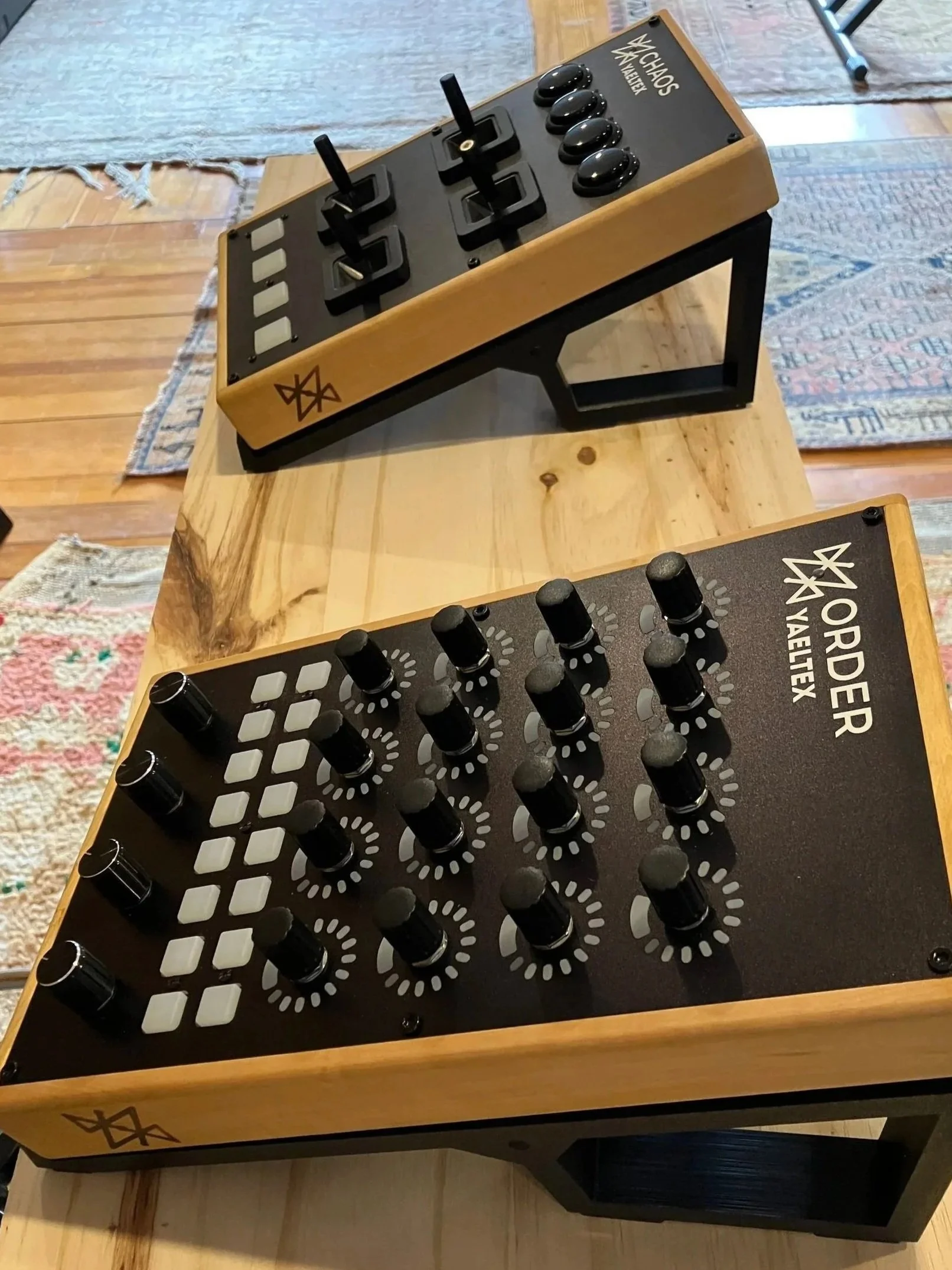 Custom hardware controllers (“Order” and “Chaos”), sample environment